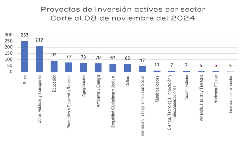 Mideplan, San José, Costa Rica – 14/11/2024. El Ministerio de Planificación Nacional y Política Económica (Mideplan), en su rol como ente rector de la inversión pública en el país, presenta la cantidad de proyectos activos por sector registrados en el Banco de Proyectos de Inversión Pública (BPIP) al corte realizado el 8/11/2024, reflejando un total de 993 proyectos activos en las distintas etapas dentro del ciclo de vida de los proyectos. Esta información tiene como objetivo presentar al país cuales son los sectores que tienen mayor cantidad de proyectos inscritos para la mejora de servicios y la construcción de infraestructura.