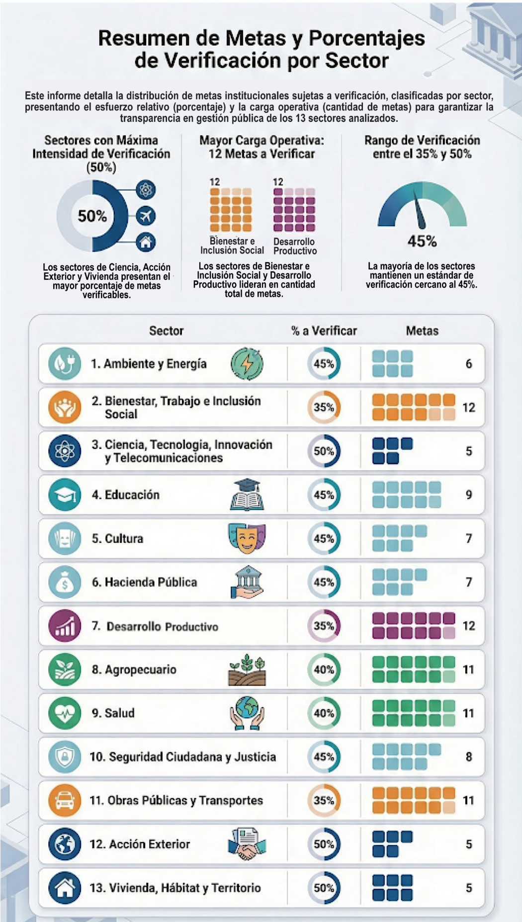 A continuación, se detallan los sectores y el volumen de metas sujetas a verificación este año: